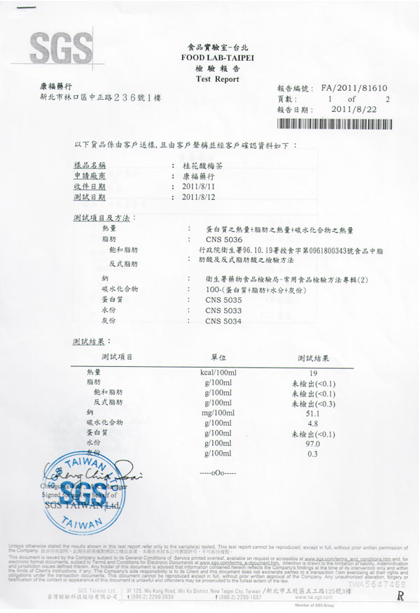 康福神農桂花酸梅茶,養顏、生津、潤喉,飯後幫助消化、消脂肪。